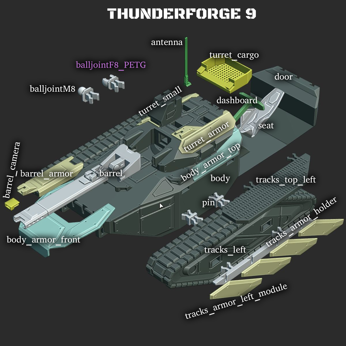 - Material: PLA / PLA+ recommended and PETG/ABS joints